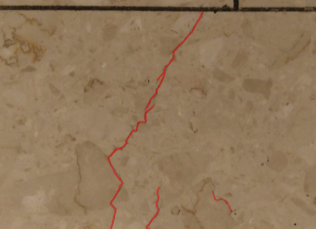An example of marking two different classes (red roads and yellow buildings) in the one image.