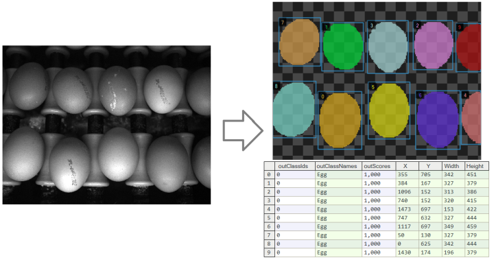 An example of instance segmentation using DeepLearning_SegmentInstances tool. Left: The original image. Right: The resulting list of detected objects.