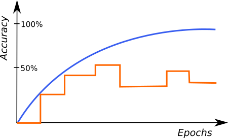 Above graphs represent training progress in our Deep Learning Editor, the blue line indicates the performance on training samples, and the orange line represents the performance on validation samples. Please note the blue line is plotted more frequently than the orange line, as validation performance is verified only at the end of each iteration.
