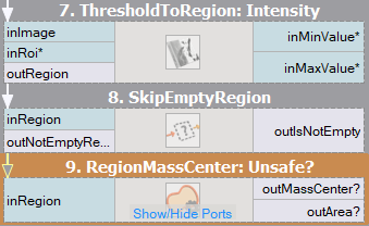 RegionMassCenter properly preceded with SkipEmptyRegion. Conditional processing appears. |