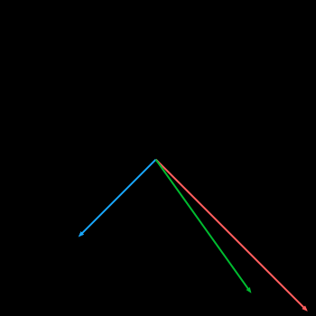 LerpVectors performed on two vectors: inVector1 DeltaX = 50, DeltaY = 50, inVector2 DeltaX = -25, DeltaY = 25, inLambda = 0,25. The green vector is the output vector.