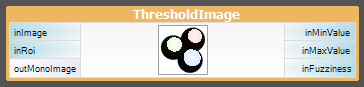 void ThresholdImage ( const Image& inImage, Optional<const Region&> inRoi, Optional<real> inMinValue, Optional<real> inMaxValue, real inFuzziness, Image& outMonoImage ); |