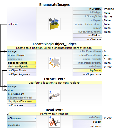 - Read text – recognizing the extracted characters with the ReadText filter.