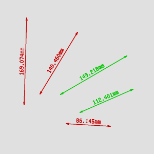 Draws dimension lines on an image with two colors, depending on the status of each dimension line (usually: green or red for pass/fail status).