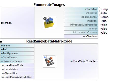 ReadSingleDataMatrixCode Detects and recognizes one Data Matrix code.