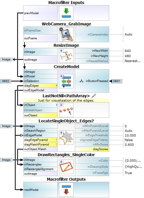 | LocateSingleObject_Edges | Detection of an object whose outlines are sharp and rigid. Often one of the first filters in a program. | |
