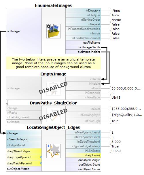 LocateSingleObject_Edges Detection of an object whose outlines are sharp and rigid. Often one of the first filters in a program.
