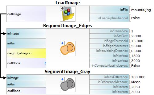 | SegmentImage_Edges | Detection of objects of undefined shape, but characterized by good contrast to the background and fairly uniform internal brightness. | |