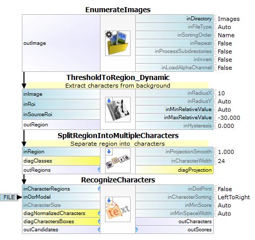 | RecognizeCharacters | Usually the last, yet the most important step of optical character recognition or verification. | |