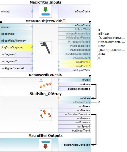 MeasureObjectWidth Measures the width of an object using stripe detection.