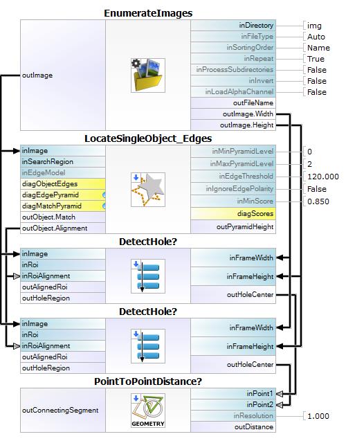 | LocateSingleObject_Edges | Detection of an object whose outlines are sharp and rigid. Often one of the first filters in a program. | |
