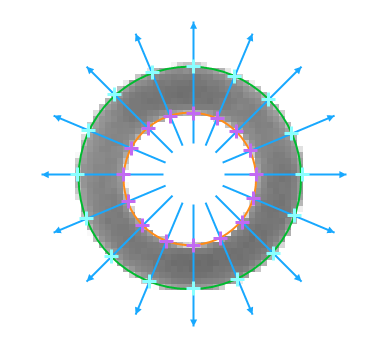 outCircle | Circle2D? | Fitted circle in the middle of found stripe | |