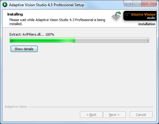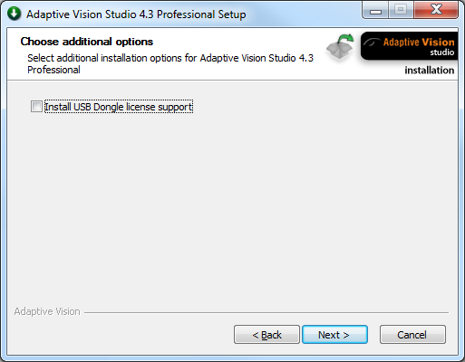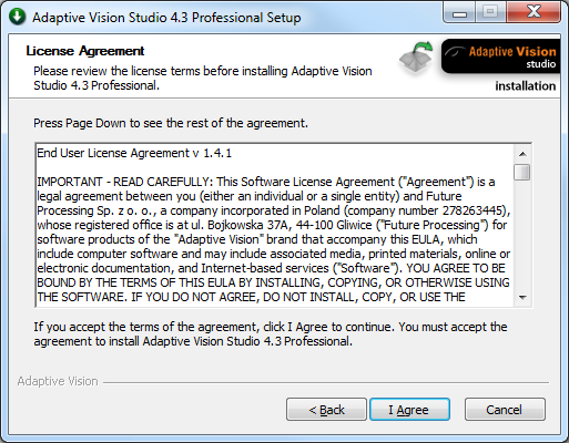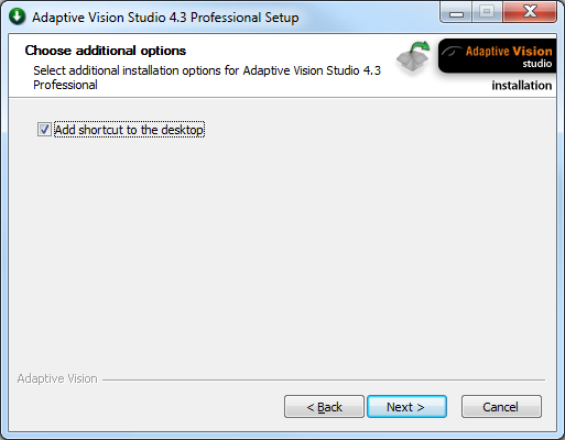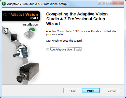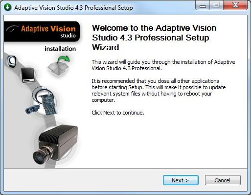 Important: Adaptive Vision Studio setup program requires the user to have administrative privileges.
