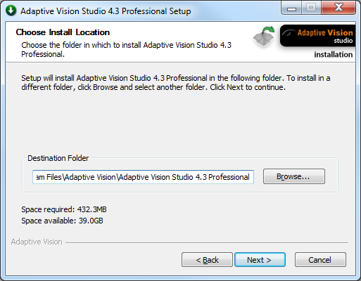 Choose where Adaptive Vision Studio should be installed on your disk.