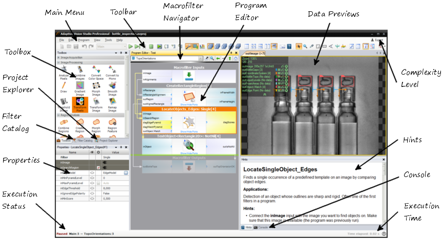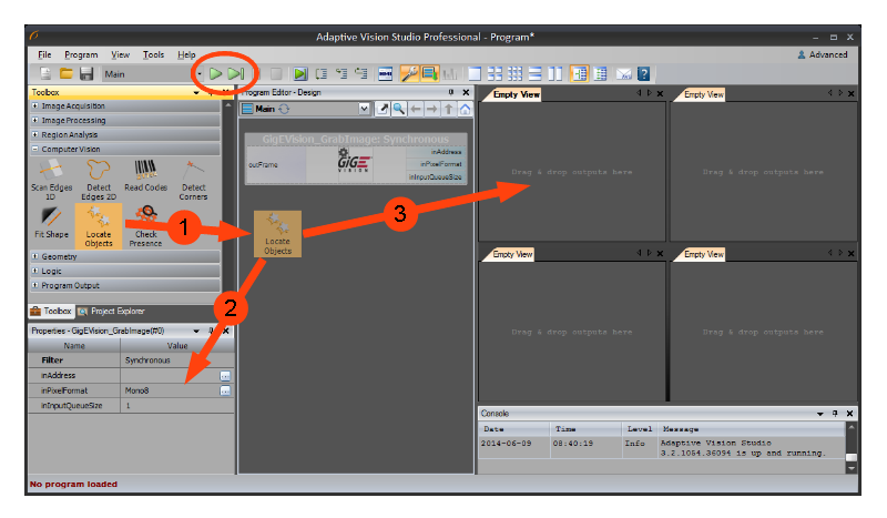Creating vision algorithms in Adaptive Vision Studio consists in repeating three intuitive steps: