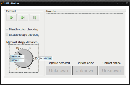 Although image analysis algorithms are the central part of any machine vision application, a human-machine interface (HMI, end user's graphical environment) is usually also very important. Adaptive Vision Studio, as a complete software environment, comes with an integrated graphical designer, which makes it possible to create end user's graphical interfaces in a quick and easy way.