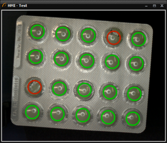 In a blister inspection application we detect pill cells and check if each pill is present or not. We want to display green or red circles over the cells, indicating the inspection results.