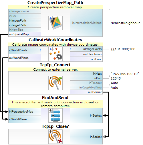 Macrofilter Main – initialization of a TCP/IP connection, creation of a perspective map, calibration of world coordinates.