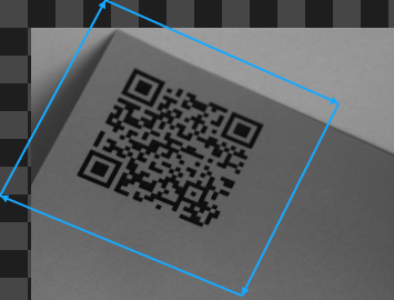 The left image shows a tilted QR code. The perspective is removed in the right image.