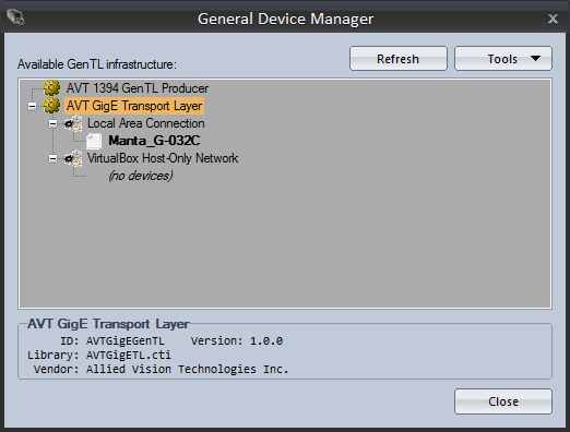 • Choose Tools » Manage GenICam Devices... from the Main Menu.