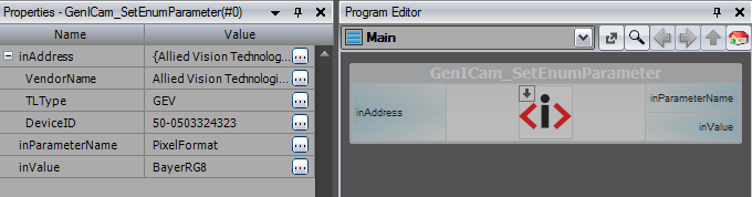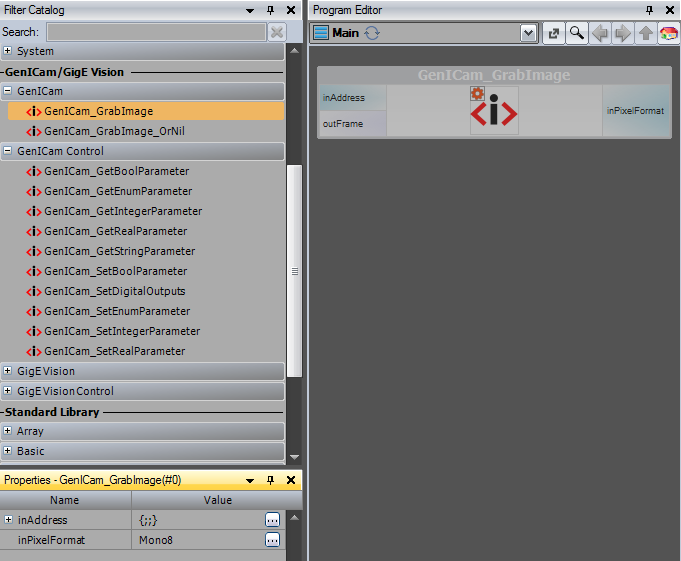 • Add one of GenICam filters to program and open the GenICam Device Manager directly from filter properties.