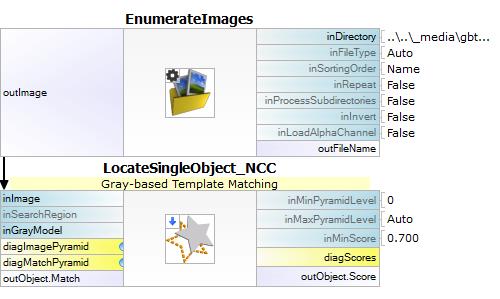 2. Add the LocateSingleObject_NCC filter and connect it with the input image.