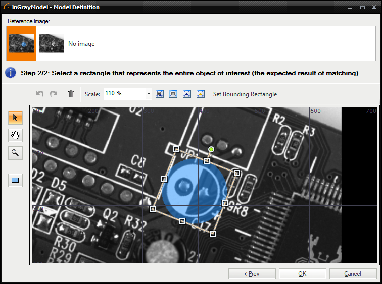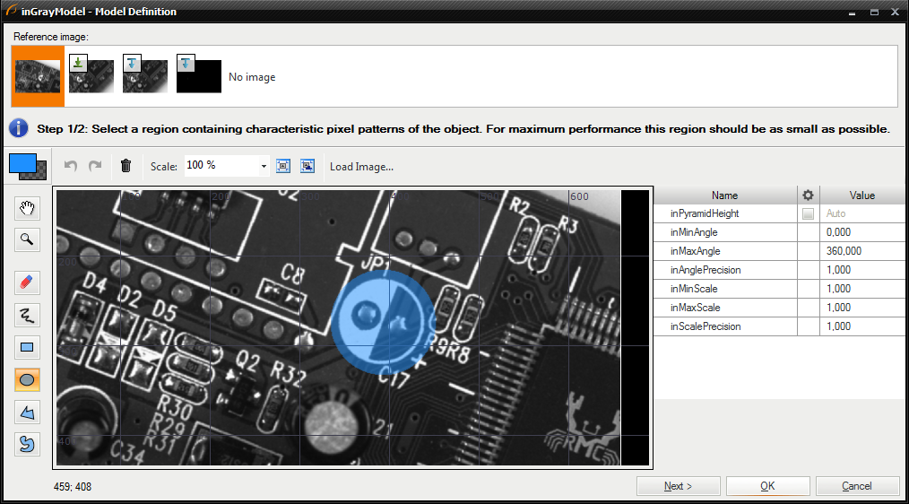 3. Open a template matching editor on inGrayModel and set model parameters as on the image below.