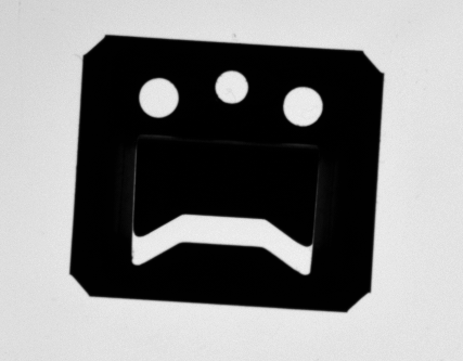 This exercise can be solved using two most frequently used techniques: 1D Edge detection and Template Matching. In first part object should be found and after that calculated object's alignment should be used to perform measurements.