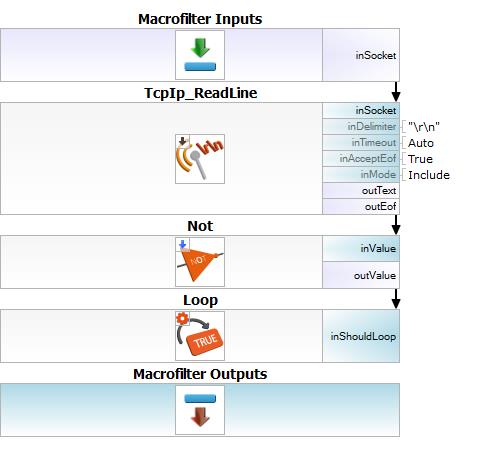 Connect the TcpIp_ReadLine.inSocket input with the input of the macrofilter.
