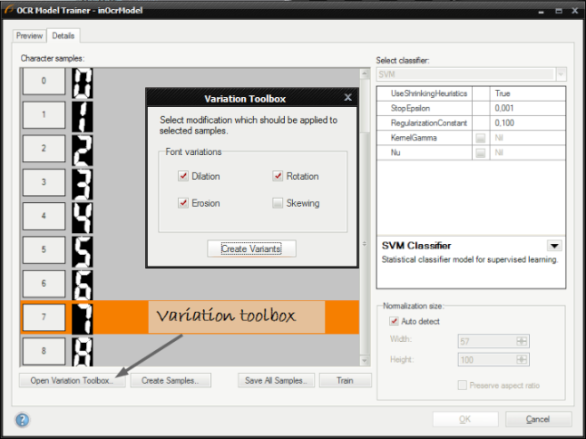 Creating character variations in case when no more samples are available and the training result is not fine the editor can modify existing samples to create a new set.