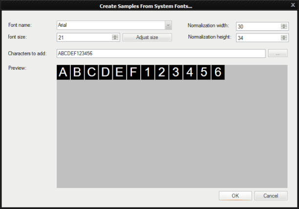 Creating artificial samples - when no samples are available user can create a training set using systems fonts.