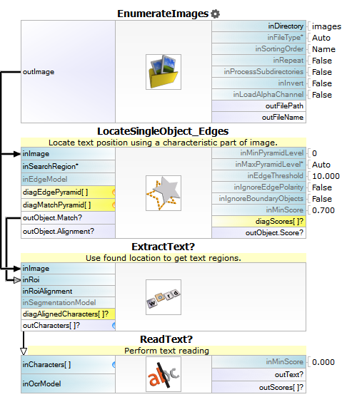 - Read text – recognizing the extracted characters with the ReadText filter.