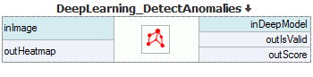 This technique tries to find any images that significantly deviate from normal image appearance learned during training phase. It is done by examining the "deviation" of a test image from a "correct image" claimed by the network. If the overall deviation score exceeds a given threshold, the image is marked as defected. The suggested threshold is automatically calculated after the training phase but can be adjusted by user in the Deep Learning Editor using the interactive histogram tool described below.