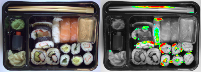 An example of complex defects detection inside a sushi box.