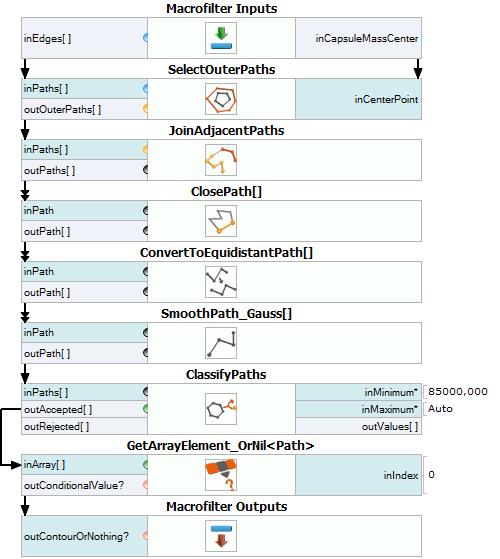 So far, you have an array of edges represented by paths. To obtain a contour of the capsule, a few operations must be performed. This is a subtask, therefore create a macrofilter CombineEdgesIntoContour.