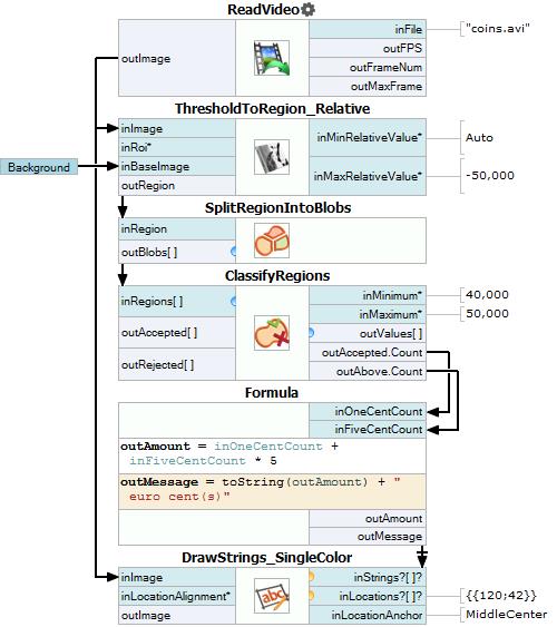 Macrofilter Main extracts coins from video frames and calculates visible money amount.