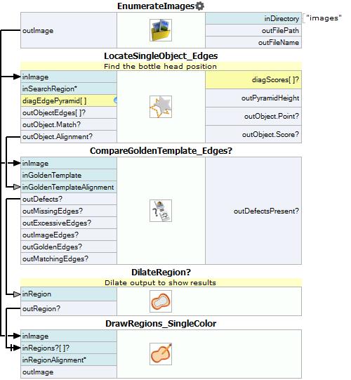 Add filter CompareGoldenTemplate_Edges and connect to inImage output of EnumerateImages.