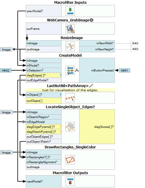 | LocateSingleObject_Edges | Detection of an object whose outlines are sharp and rigid. Often one of the first filters in a program. | |