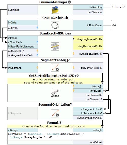 - inAngle of type Real. To this input connect output of SegmentOrientation.