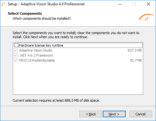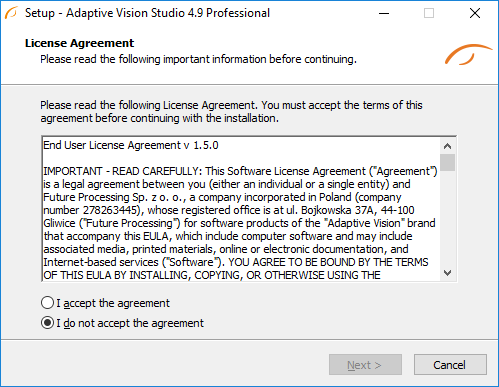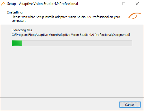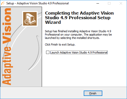 Important: Adaptive Vision Studio setup program requires the user to have administrative privileges.