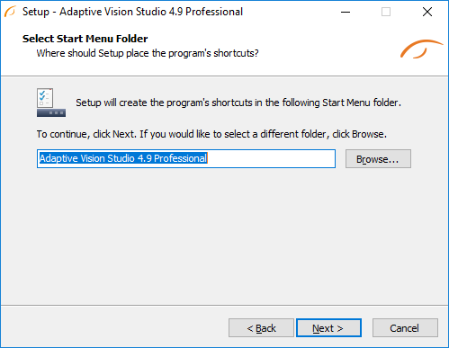 Choose if Adaptive Vision Studio should create a Start Menu shortcut.