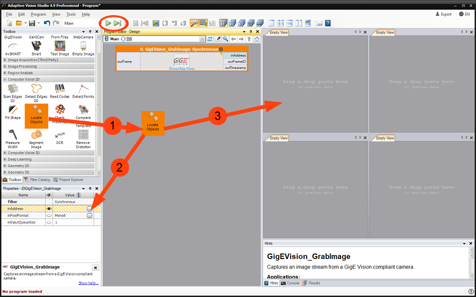 Creating vision algorithms in Adaptive Vision Studio consists in repeating three intuitive steps: