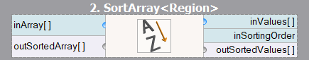 Some filters have several array inputs and require that all the connected arrays are synchronized, so that it is be possible to process the elements in parallel. For example, the SortArray filter requires that the array of the objects being sorted and the array of the associated values (defining the requested order) are synchronized. This requirement is visualized with blue semicircles on the below picture: