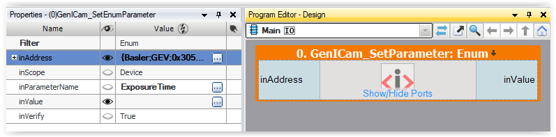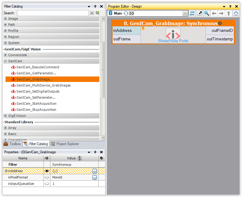 - Add one of GenICam filters to program and open the GenICam Device Manager directly from filter properties.