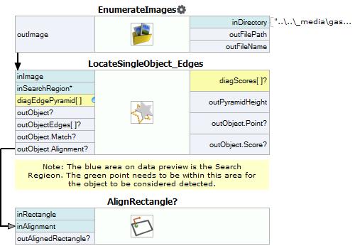 Add AlignRectangle filter and connect outObject.Alignment of LocateSingleObject_Edges filter with inAlignment of AlignRectangle filter.
