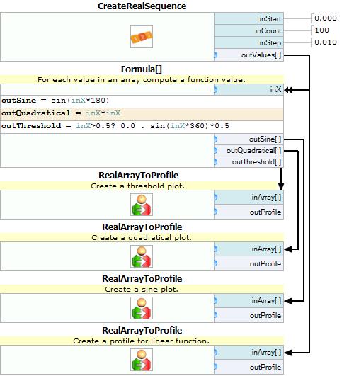 Add four RealArrayToProfile filters and connect their inputs to the outputs of the formulas.