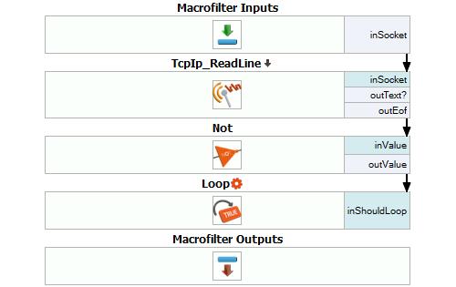 Connect the TcpIp_ReadLine.inSocket input with the input of the macrofilter.