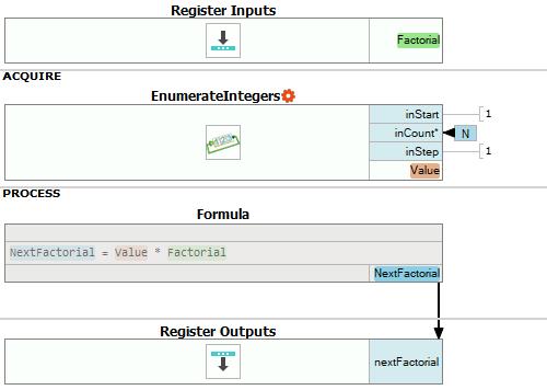 Connect the NextFactorial formula's output with the register's output: nextFactorial .