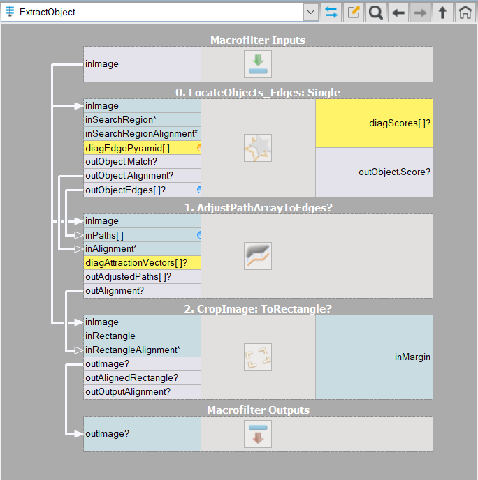 Golden Template is an image comparison technique. It is based on the pixel-to-pixel comparison but uses multiple images and advanced algorithms to create a multi-image model. It is useful for finding general defects of objects that have fixed shape. In order to simplify the process of model creation a "GUI for Golden Template 2" was created. It is possible to access it by clicking on the button at the inModel input in the Properties window: