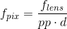 where f_pix - focal length measured in pixels, f_lens - focal length of lens measured in millimeters, pp - sensor pixel pitch measured in millimeters per pixel, d - camera binning or/and image downscaling factor
